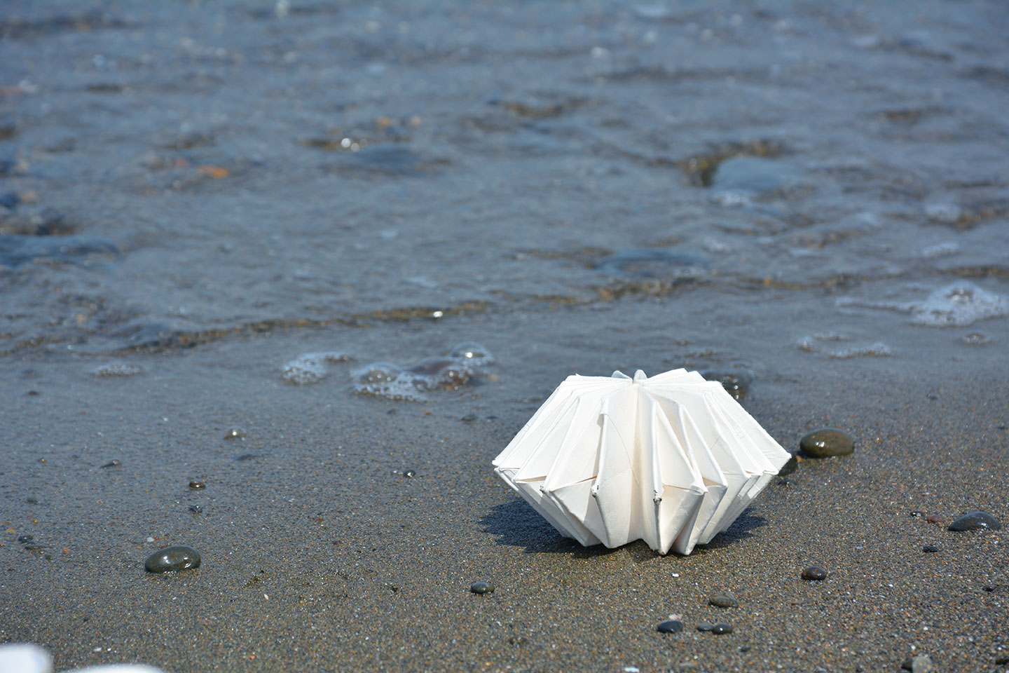 教室中央に山を作り、片隅には、糸を張った紙で池(水面)を作ります。